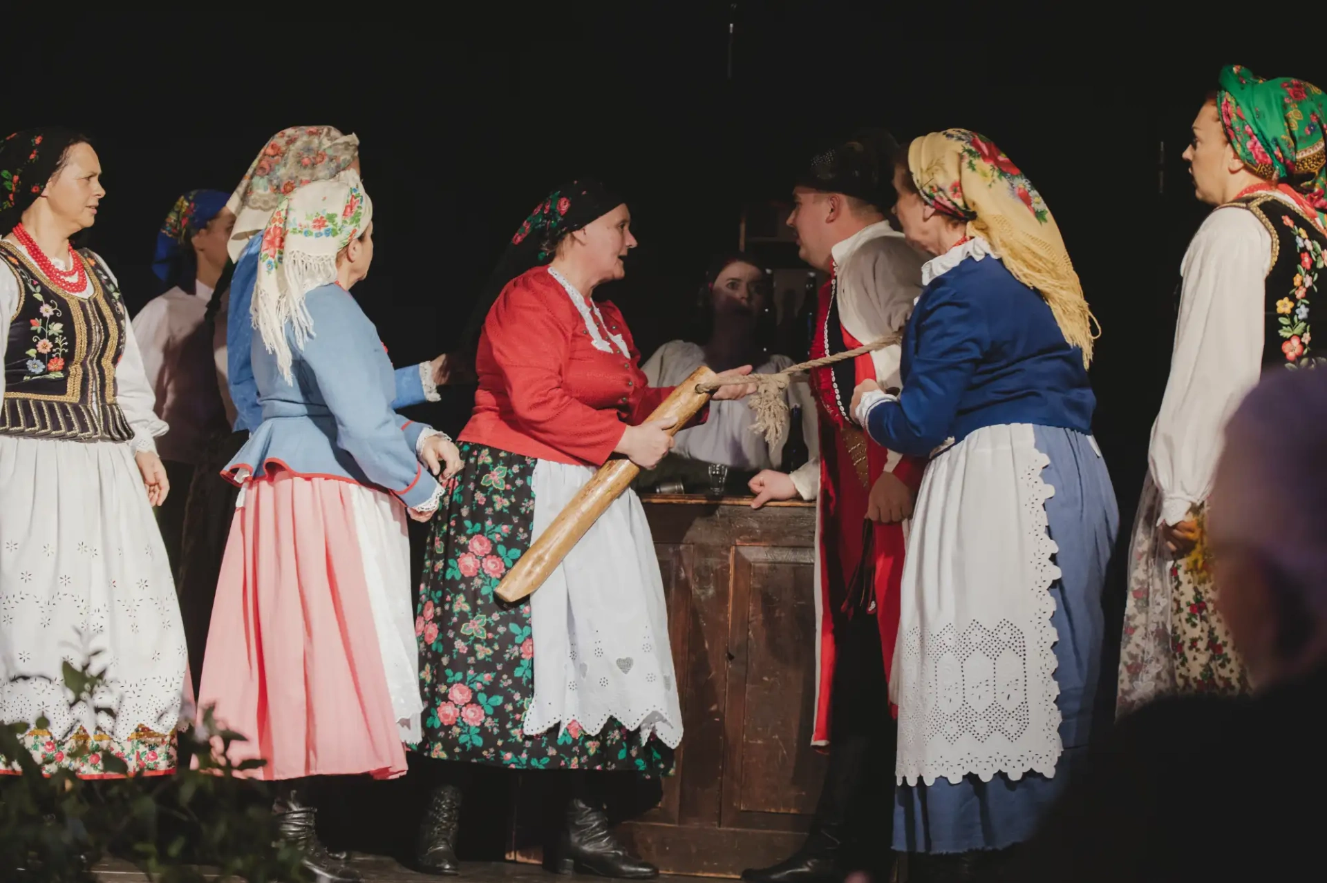 Czasami w mogilańskim combrze pojawia się też postać baby, której takie breweryje nie w smak są. Wojciechow, ta z Cyrwonej Górki - ta co u niej wszystko w domu „nojlepse” – i krowa, i chłop, i śmietana… i choć co… Z babami do combra nie stawała bo takie bezeceństwa gospodyni takiej jak ona się nie godzą… Kto to widzioł na pijatykę do karcmy chodzić!!!